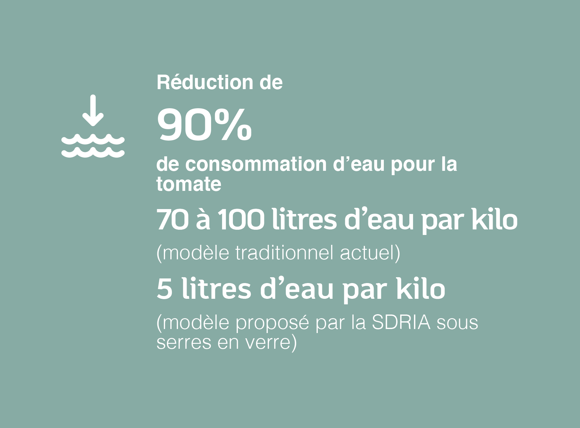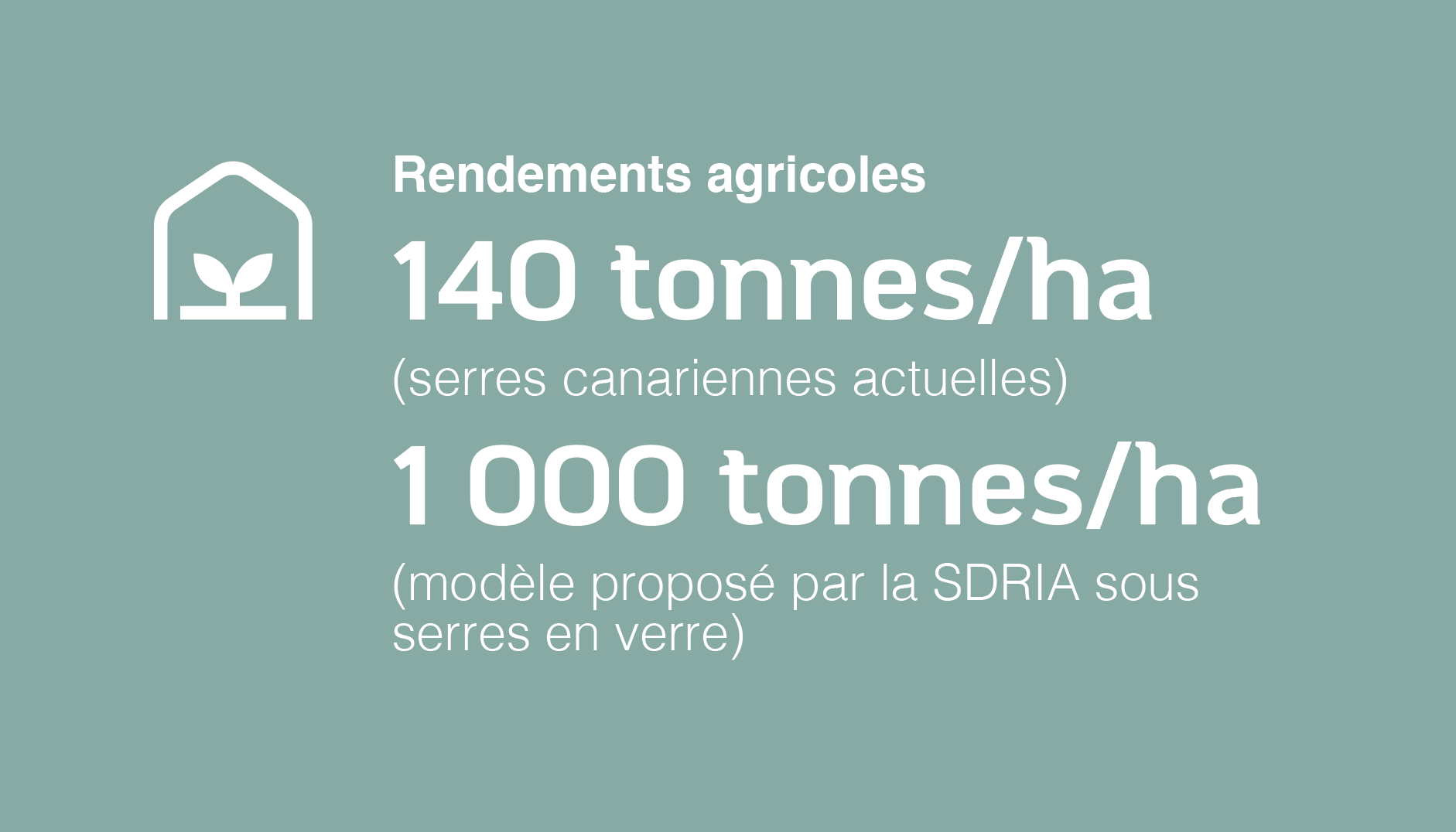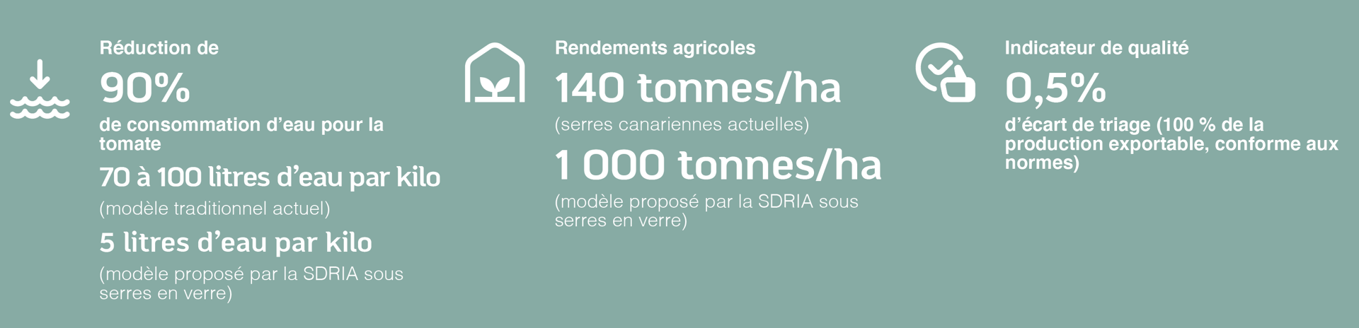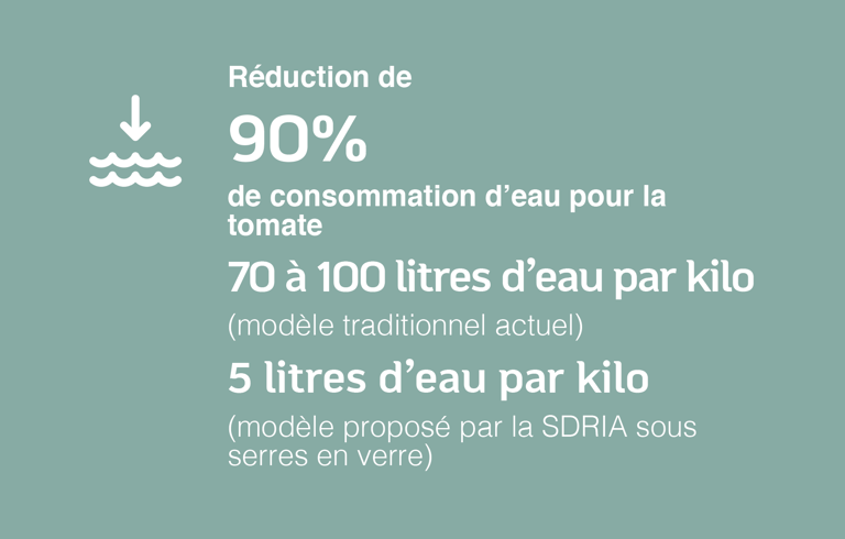 Par exemple, la culture de la tomate sous serre ouverte nécessite aujourd’hui entre 70 à 100 litres d’eau pour produire un kilogramme. Avec notre technologie sous serre en verre, à climat contrôlé et en circuit fermé, cette consommation tombe à seulement 5 litres par kilo. Et ce, tout en atteignant des rendements records de 1000 tonnes/ha contre une moyenne nationale de 140 tonnes/ha dans les meilleures serres canariennes.