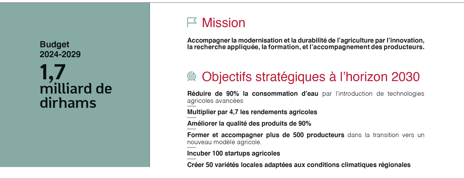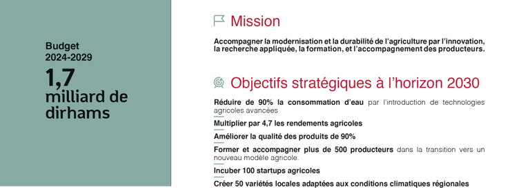 Un pôle de création variétale maroco-marocaine, avec 50 nouvelles variétés résistantes et adaptées aux conditions arides, développées via des partenariats avec des startups et universités internationales.