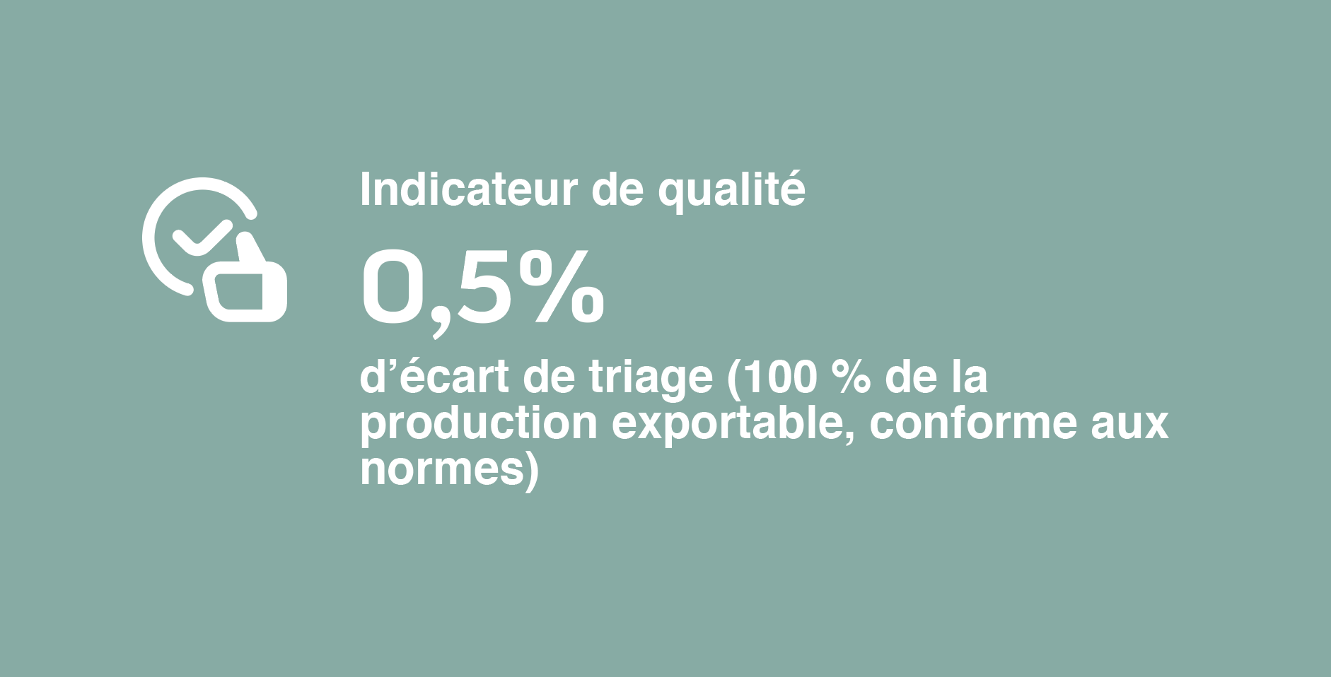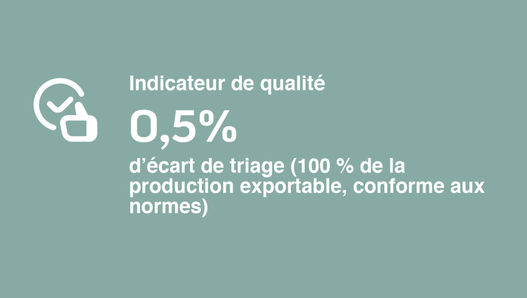 De plus, 100% de la production sera conforme aux normes d’exportation avec un écart de triage inférieur à 0,5%. Autrement dit, plus de rendement, plus de qualité, et moins d’eau consommée.