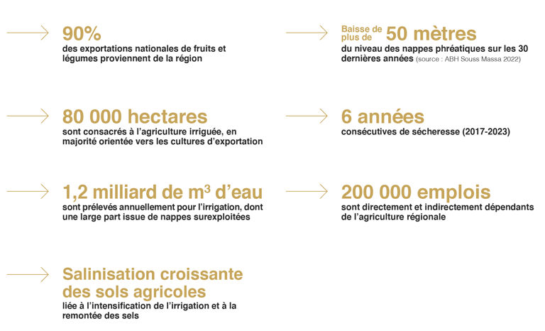 Pourtant, cette région reste le cœur battant de l’agriculture exportatrice marocaine, représentant à elle seule plus de 90 % des exportations nationales de fruits et légumes.