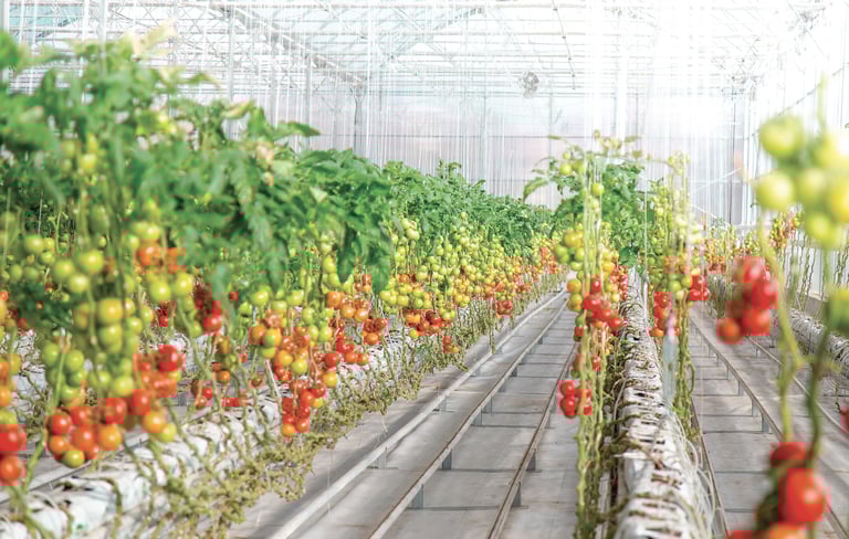 Le déploiement de plus de 20 hectares de serres high-tech, avec une unité de conditionnement et d’emballage, pour une production annuelle et continue au sein même du Hub.