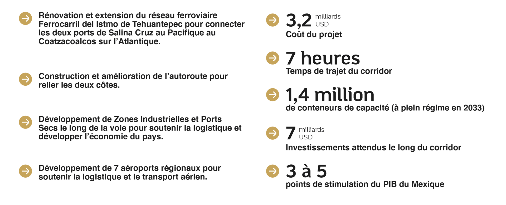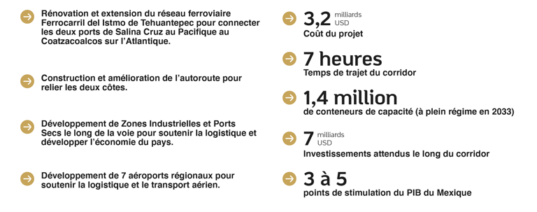 Relancée en 2018, une autre route commerciale est en passe de transformer l’avenir économique du Mexique en proposant une alternative au Canal du Panama à travers un corridor de voie ferrée de 315 km reliant l’Atlantique au Pacifique. Ce Corridor Multimodal Interocéanique permettra aux marchandises de passer d’un océan à l’autre en traversant l’Isthme.