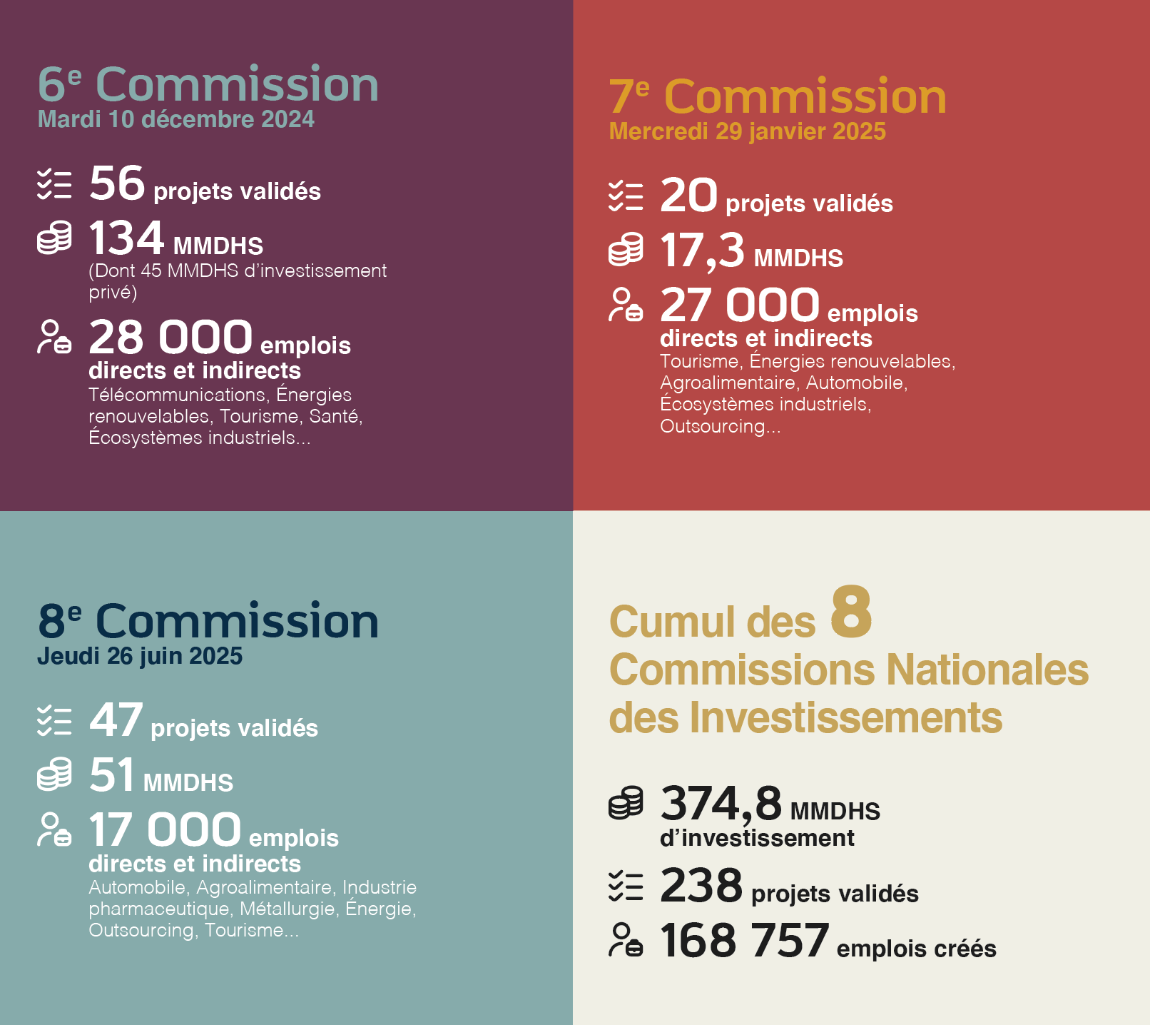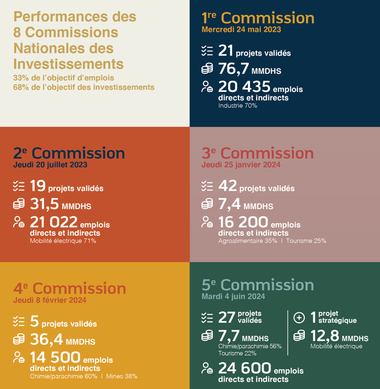 Les 8 Commissions Nationales des Investissements consolident un total d’investissement de 374,8 MMDHS et 168 757 EMPLOIS
